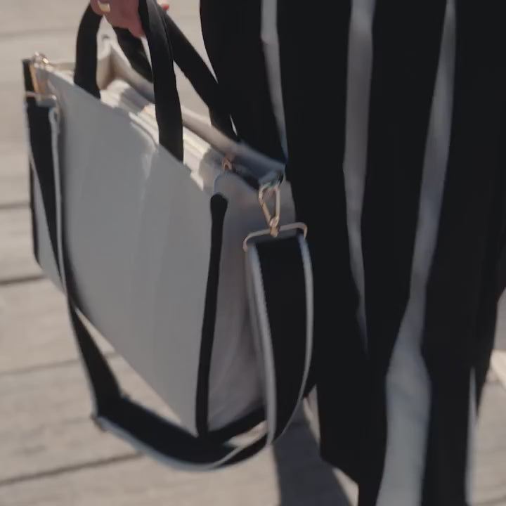 - Avtagbar, justerbar, vävd axelrem i kontrasterande färg