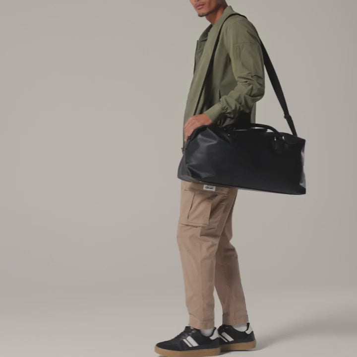 Väska i vackert konstläder. Blixtlåsförsedd intern ficka för värdesaker. Mjukt foder. Invändig bottenplatta och skyddande fötter i botten. Extra lång dragkedja i huvudfack för enkel åtkomst. Snyggt blixtlås i blank metall. Bärhandtagen är 57 cm vilket gör att väskan kan bäras i handen eller över axeln. Avtagbar och justerbar axelrem.